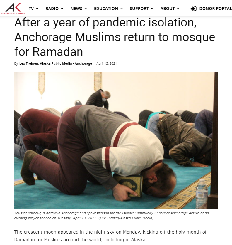 There are more than 3000 Muslims living in Anchorage with nationalities from all over the world.