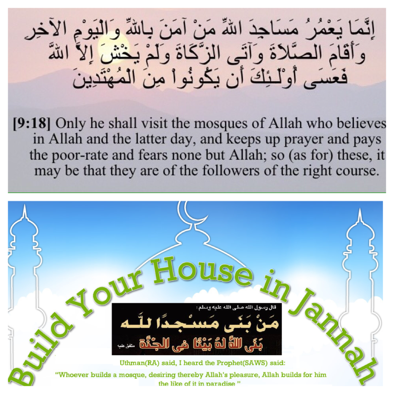 "Whoever builds a Masjid, seeking the pleasure